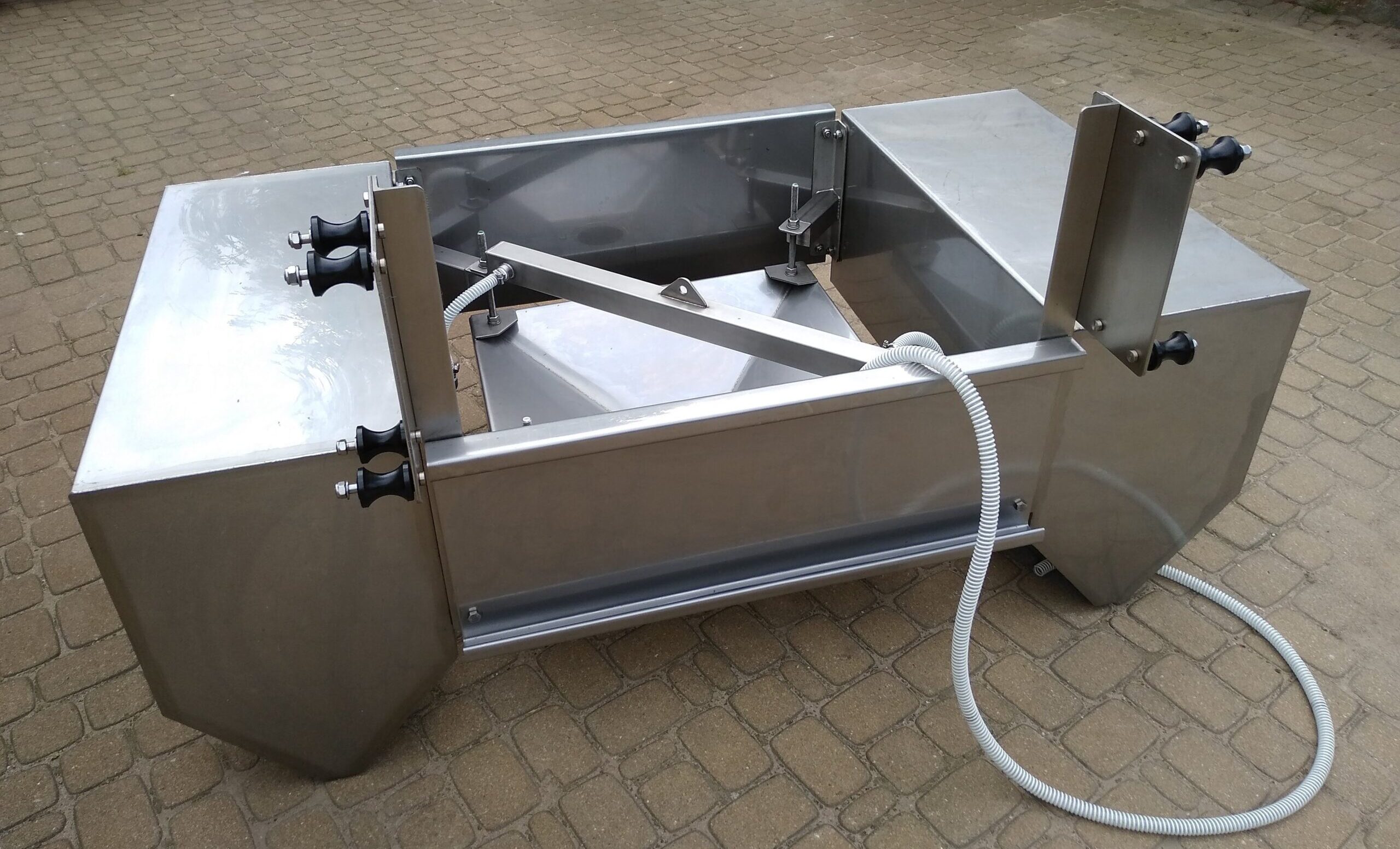 Dekanter elektryczny zamontowany w zbiorniku. Dekanter wielopływakowy w trakcie opuszczania do zbiornika. Dekanter pneumatyczny ustawiony na placu wyłożonym kostką brukową. Dekanter elektryczny DE zanurzony w zbiorniku. DE - Dekanter elektryczny zanurzony w zbiorniku. DE - Dekanter elektryczny montowany na pływakach. DE - Dekanter elektryczny, przygotowany do montażu. Dekanter elektryczny DE, zamontowany w zbiorniku oczyszczalni ścieków. DW - Dekanter wielopływakowy, montaż w pustym zbiorniku. Dekanter DE, w trakcie prac serwisowych. Dekanter elektryczny w trakcie pracy. Natleniacz BIOX Natleniacz, mieszadła, żurawie w ofercie BIOX Sztywny przewód spustowy Zatapiacz flotatów